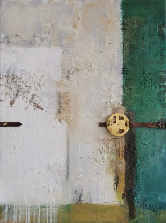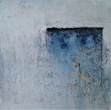 Acryl, Tinte, Steinstaub und Sand aus Griechenland und viel Wasser